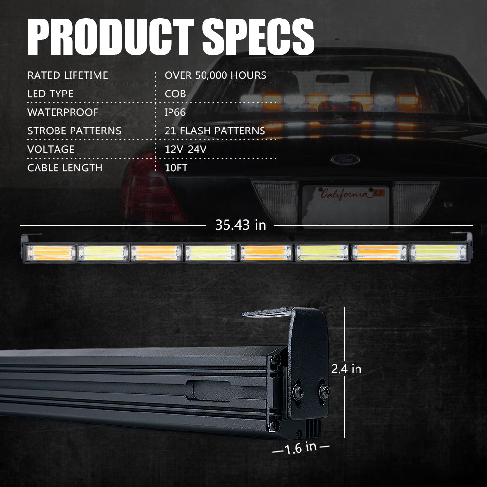 Barra de Luz Estroboscópica LED COB G2 Blanca/Ámbar 35" 40W Con Soportes de Ventosa Serie Vigilante Xprite