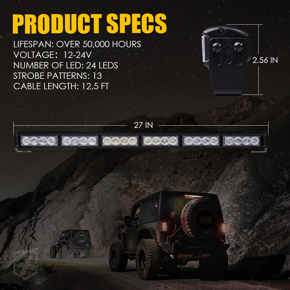 Barra de Luz Estroboscópica LED G2 de Advertencia 27" Con Soportes de Ventosa Xprite