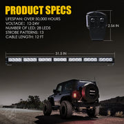 Barra de Luz Estroboscópica LED G2 de Advertencia 31.5" Con Soportes de Ventosa Xprite