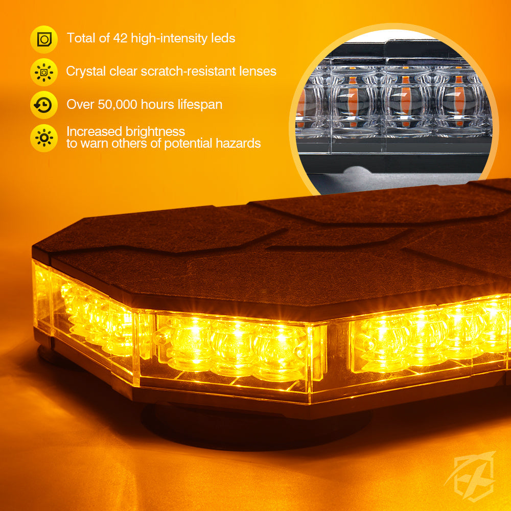 Total de 42 LED de alta intensidad para una cobertura completa de 360 grados.