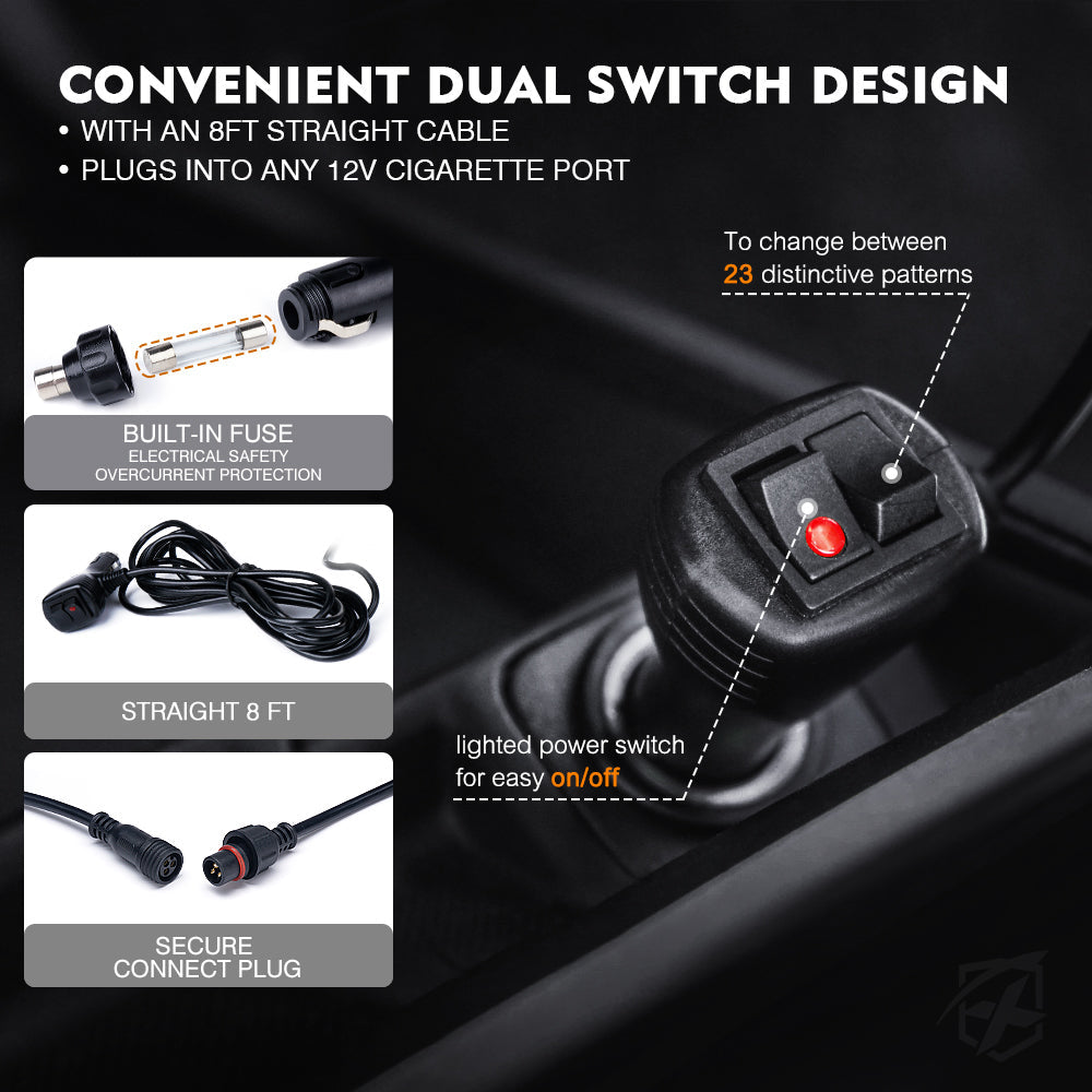 Práctico enchufe de doble interruptor para cualquier puerto de cigarrillos de 12V.