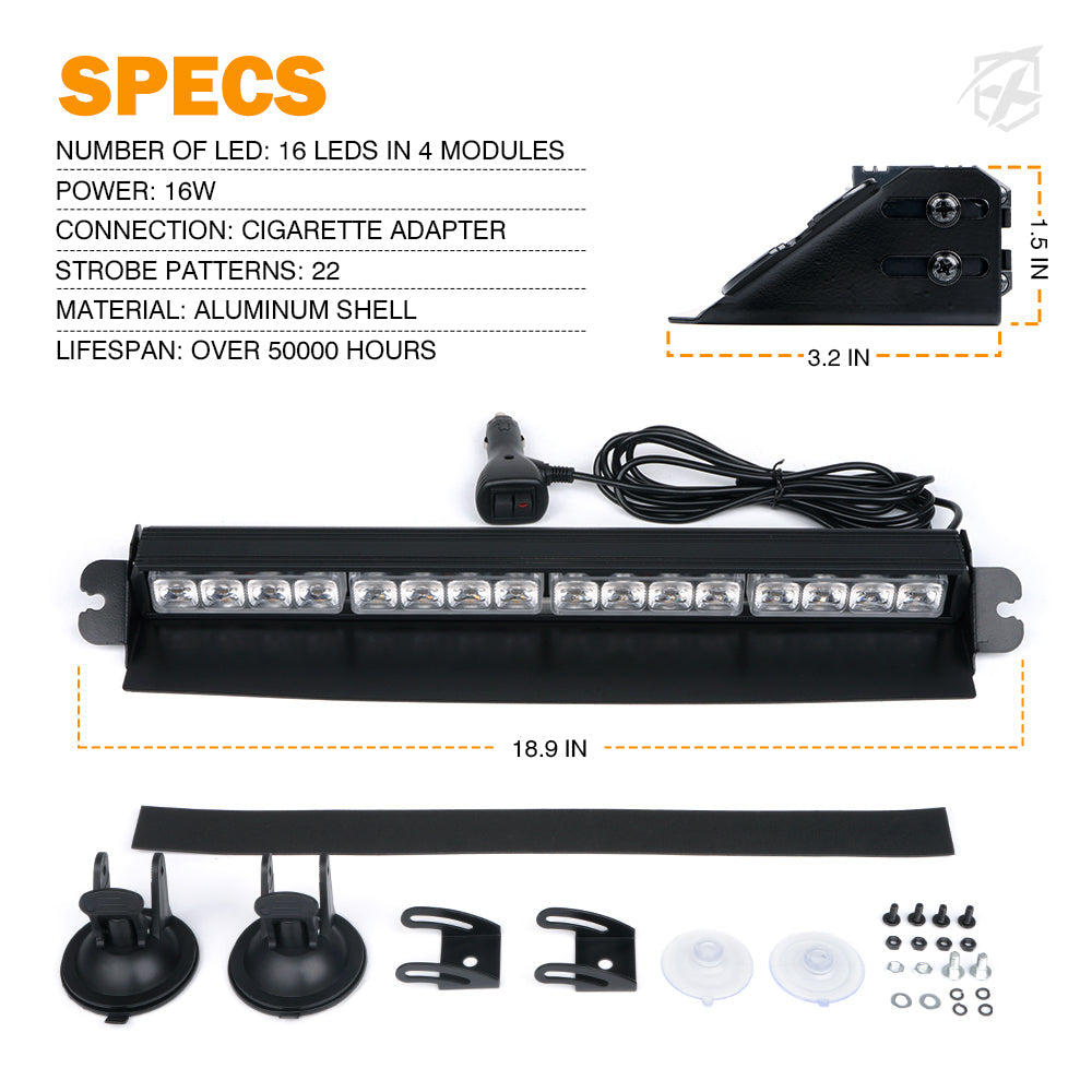 Luces Estroboscópicas LED de 16" Para Parabrisas Serie Cadet Xprite